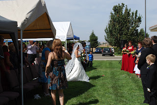 The wedding was held outside and the reception inside. The high that day got to 96, and standing in the sun is not comfortable. It ended up (after the ceremony) being a nice day. We are so thankful that we did not have the same heat we had in Aug. Over a week of 107-112 weather, over 3 weeks of over 100 degrees ~which is very uncomfortable. We did manage to get some shade for the guests.